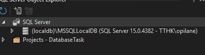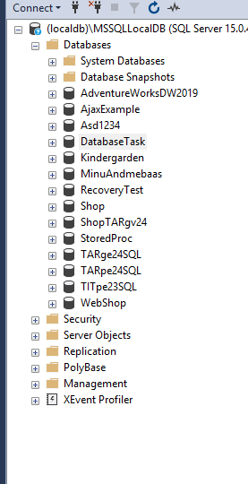 nüüd, et kontrollida avasin microsoft SQL server ja siia tekkis andmebaas DatabaseTask