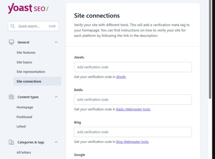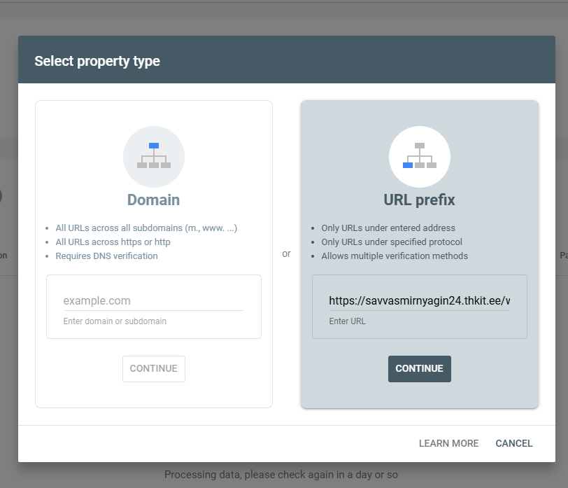 • Kasutame Google Search Consoli ja verifitseerime HTML koodi